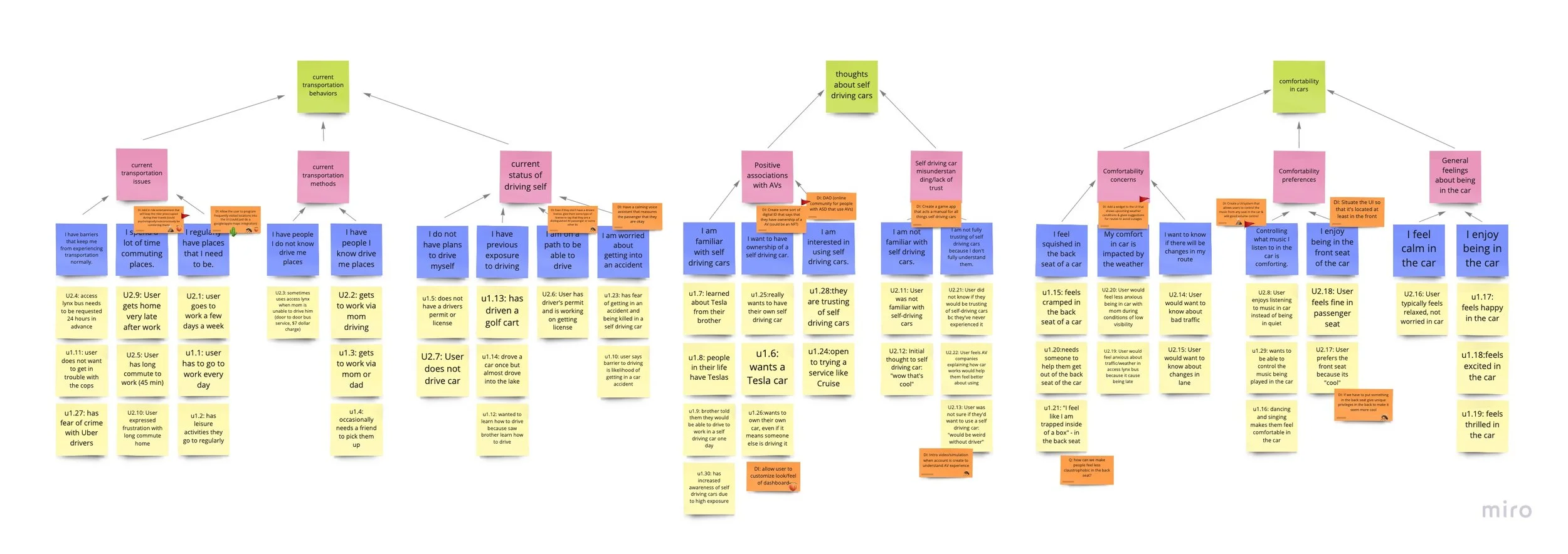 First, we walked the wall of our affinity map and created design solutions based on the findings from interviews. (See the orange sticky notes)